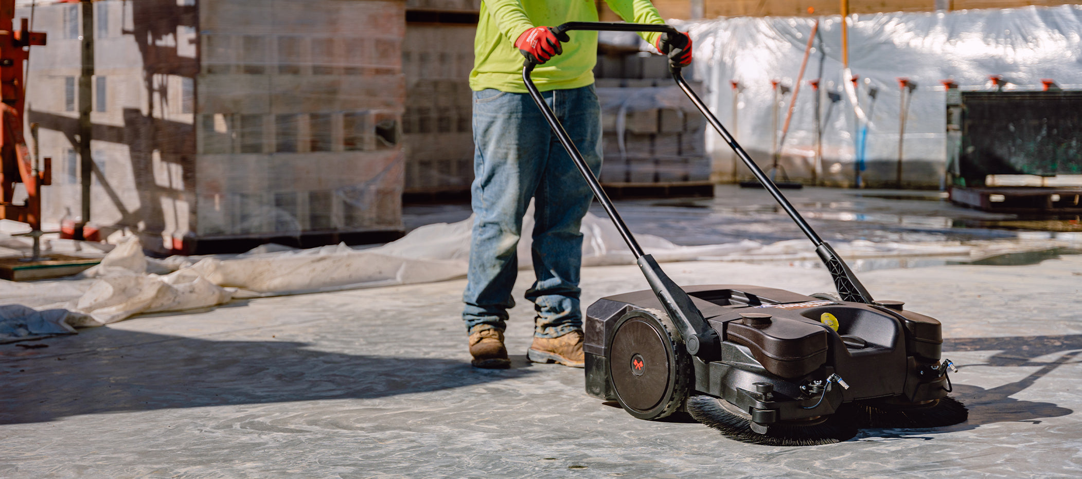 Commercial 38" Push Sweeper with Triple Power Brooms