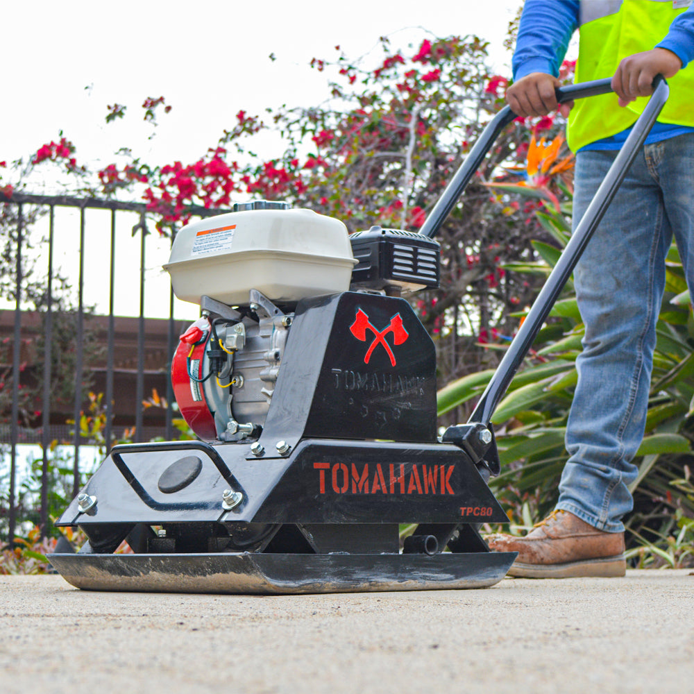 Featuring a 17” x 21” cast iron base plate, the TPC80H Forward Plate Compactor delivers an incredible force of 3,000 lbs. per square ft. at 6,400VPM. Powered by the incredible 5.5 HP Honda Engine Engine, this vibratory plate is perfect for jobsites, households, and rental fleets. Designed specifically to maneuver narrow, cramped spaces, the TPC80H compacts cohesive and granular soils up to 22 inches. Ideal for compacting landscapes, hardscapes, roadways, and asphalt, this vibratory plate is perfect for professionals, construction equipment rental, and do-it-yourselfers alike. Durable and tough, the TPC80H Forward Plate Compactor is built to last, making it perfect for those tackling projects including walkways, patios, driveways, or paver installation.