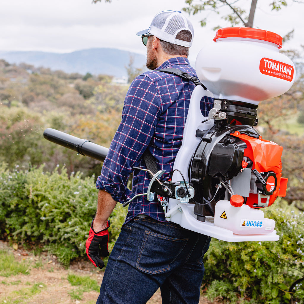 Tomahawk broadcast spreader is built for operator comfort, with incredible padding and straps it is expertly balanced for the ultimate user experience!
