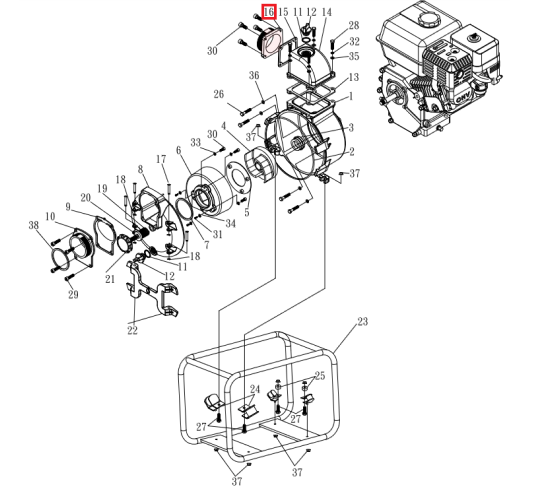 Flange (30T2-16) Spare Part for TW3H 3" Honda Trash Pump