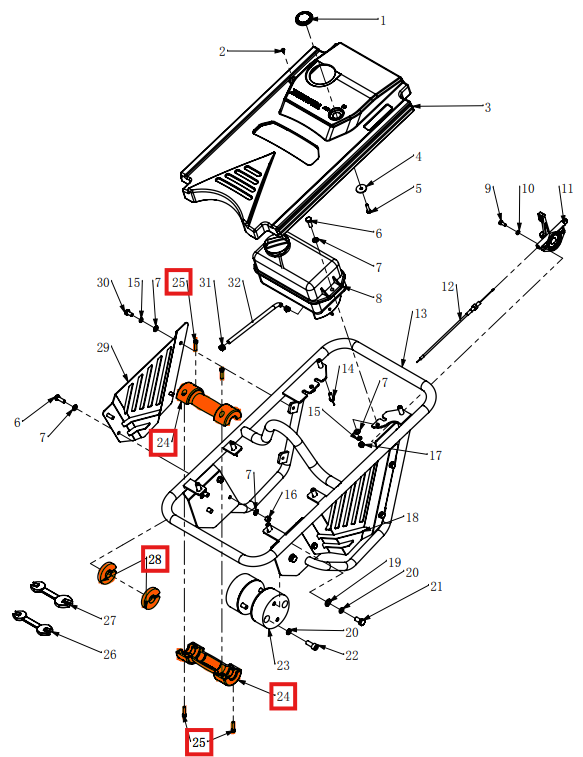 Handlebar Roller Assembly (1101-26000-1) Spare Part for TR68H 3.6HP Honda Rammer