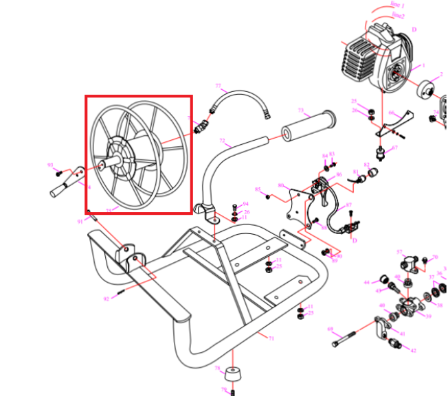 Hose Reel with Handle (Part 76) Spare Part for TBS500 1.3HP Skid Sprayer.