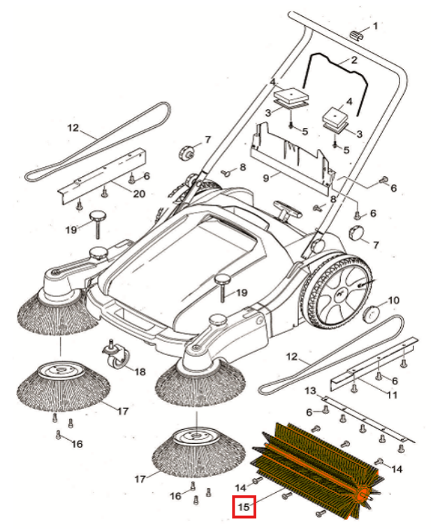 Roller Brush Spare Part for TOS38 Commercial 38" Push Sweeper